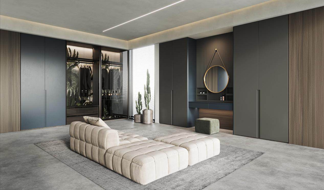 现代都市快节奏的生活模式,高压的工作强度,身体和心里都承受着高度紧张和疲惫,而家作为现代人寻求放松、自由、慰藉的港湾,应该给予用户温馨、治愈的视觉体验。圆弧则是提升家具亲近、柔和、自然的不二选择。结合圆弧元素、现代简约风格的色彩运用和配饰装饰,打造“减压”的生活环境...